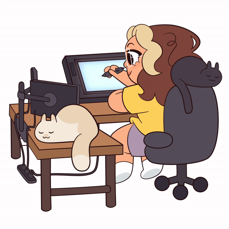When I was a kid, I always found myself drawing art based off of books and games I enjoyed. As I got older, my spark of love for animation was realized when I saw independent animations uploaded by small artists on YouTube. In high school, I took an interest in industry animation, and once I hit college I took the leap and decided to focus on doing art professionally.When I’m not working on projects, I love to create new characters, make storyboards, and draw fan art. You can also find me spending time with my two cats, Artemis and Apollo! I love traveling and exploring new places, collecting vinyl records, and watching cartoons!